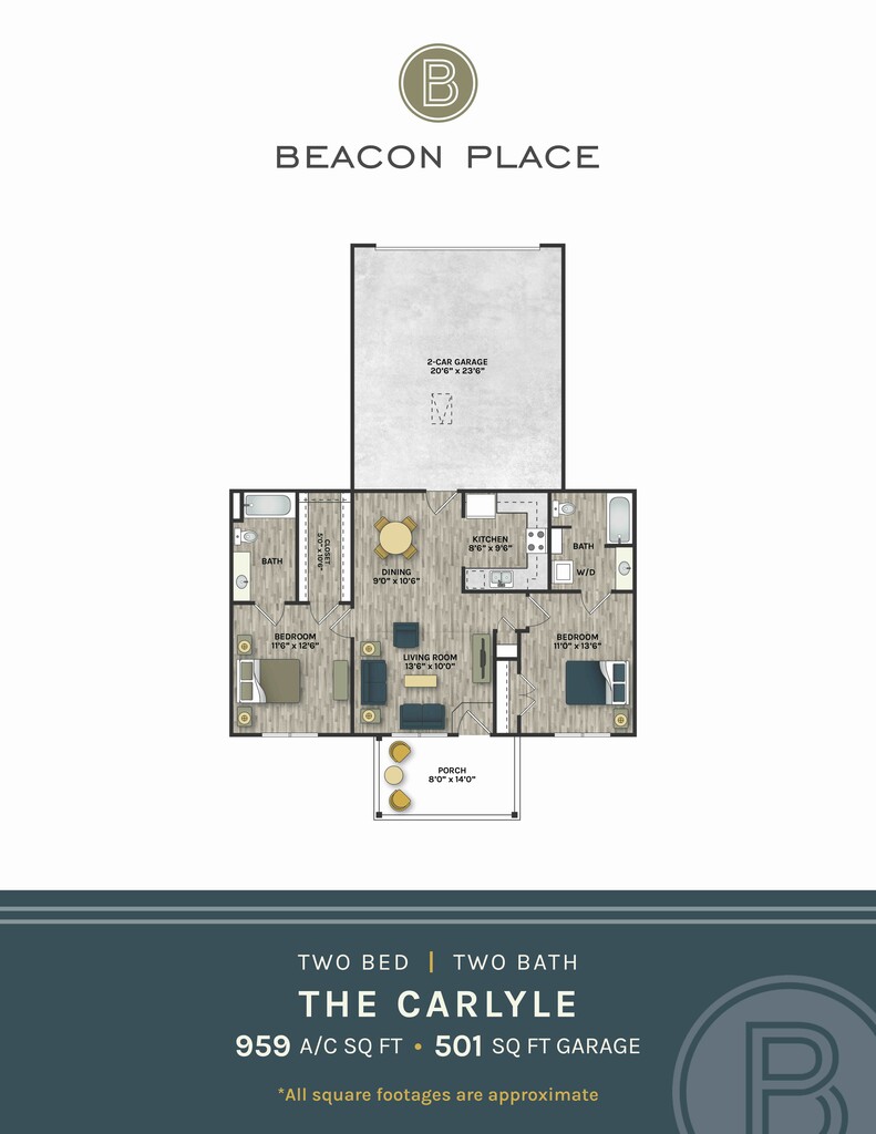 Apartment Model: Carlyle-2x2$1,7252 Bedroom, 2 Bath, 959 sq ftAvailable Now![]()