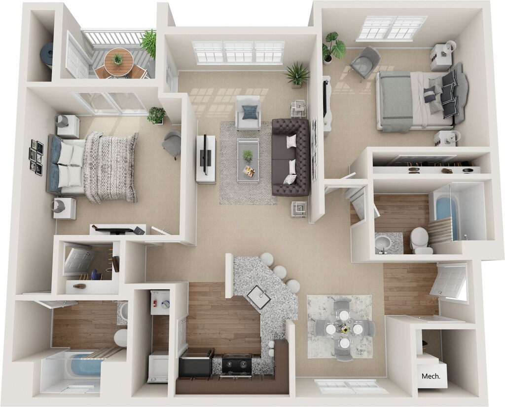 2 Beds, 2 Baths, 1066 sq ftAvailable NowModel Gallery