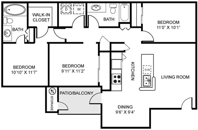 Apartment Model: Three Bedroom Two Bathroom3 Bedroom, 2 Bath, 1222 sq ftAvailable Now![]()