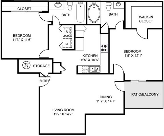 Two Bedroom Two Bathroom 993 Sq Ft - Floorplan 2 ![]()