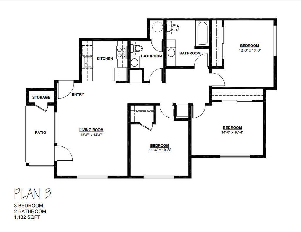Apartment Model: Three Bed$1,5993 Bedroom, 1.5 Bath, 1132 sq ftAvailable Now![]()