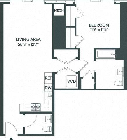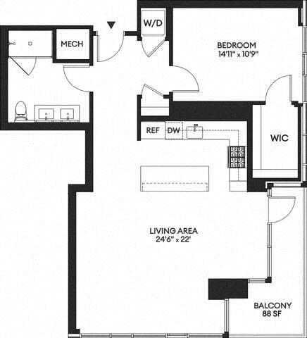 1 Bed, 1 Bath, 594 sq ftAvailable NowModel Gallery