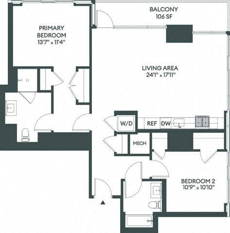 Apartment Model: 1BFrom $2,8801 Bedroom, 1 Bath, 594 sq ftAvailable Now![]()