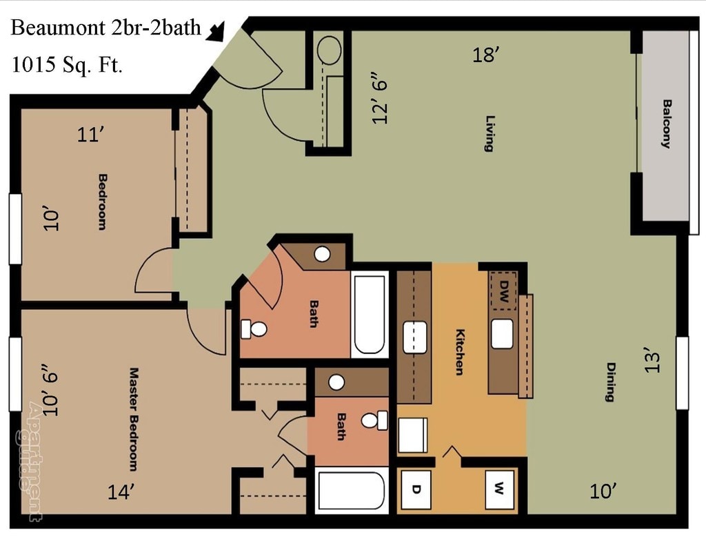 Apartment Model: Beaumont 2x2$1,4002 Bedroom, 2 Bath, 1015 sq ftAvailable NowFloorplansPhotos![]()