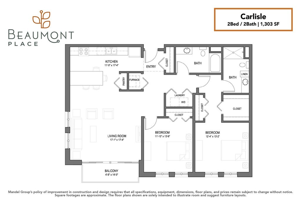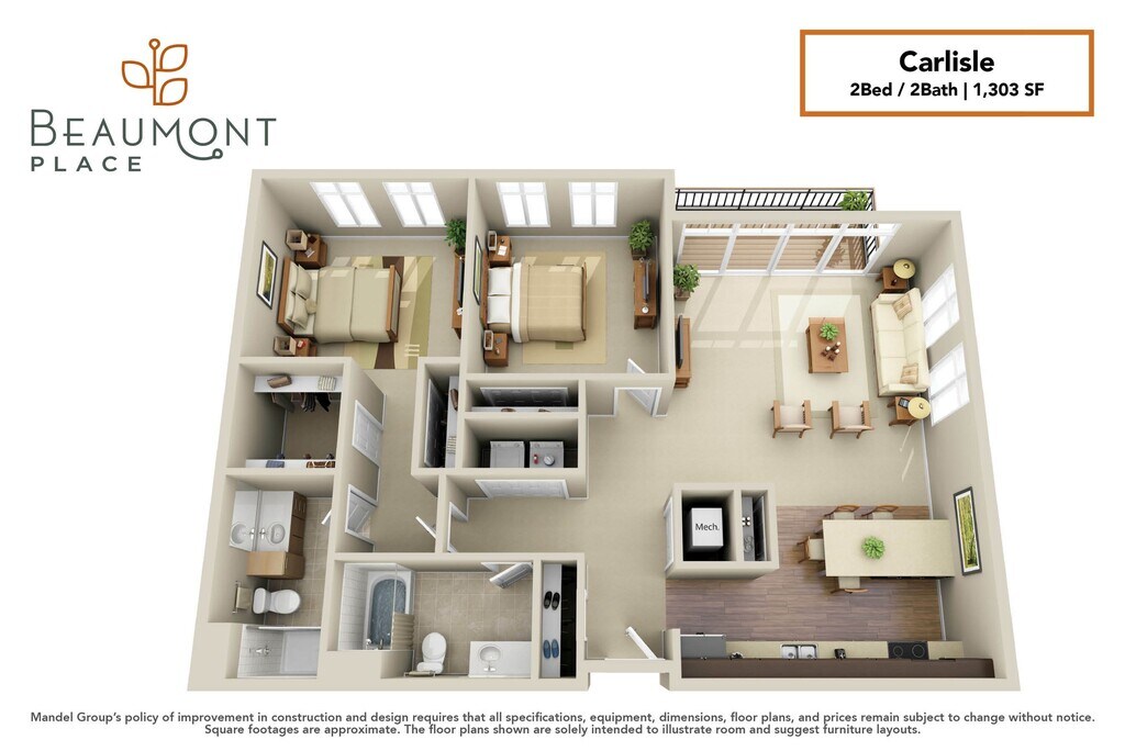 Apartment Model: CarlisleFrom $2,8742 Bedroom, 2 Bath, 1303 sq ftUnavailable![]()
