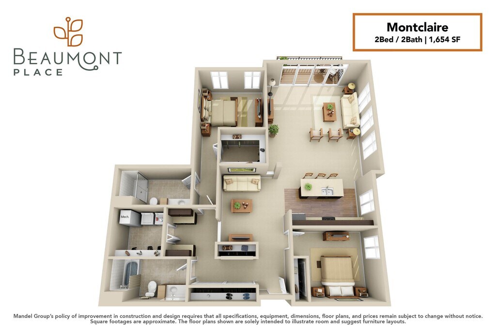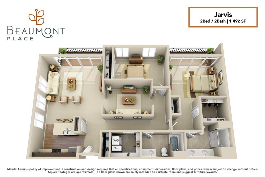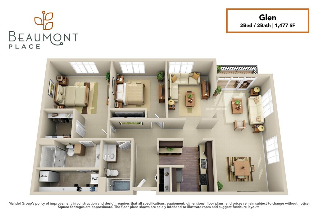 2 Beds, 2 Baths, 1477 sq ftModel Gallery