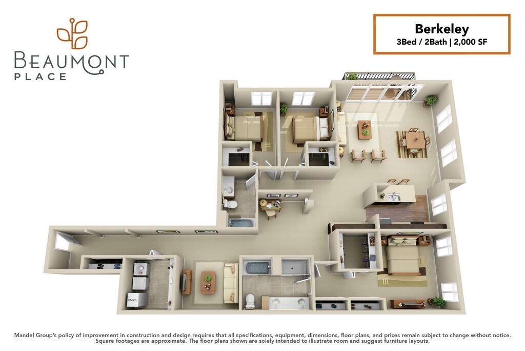 Beaumont Place Apartments offers 1 to 3 Bedroom apartments having 779–2,000 sqft. Here is the current pricing and availability: