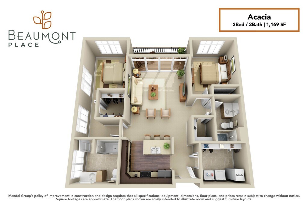 Apartment Model: AcaciaFrom $2,6492 Bedroom, 2 Bath, 1169 sq ftUnavailable![]()