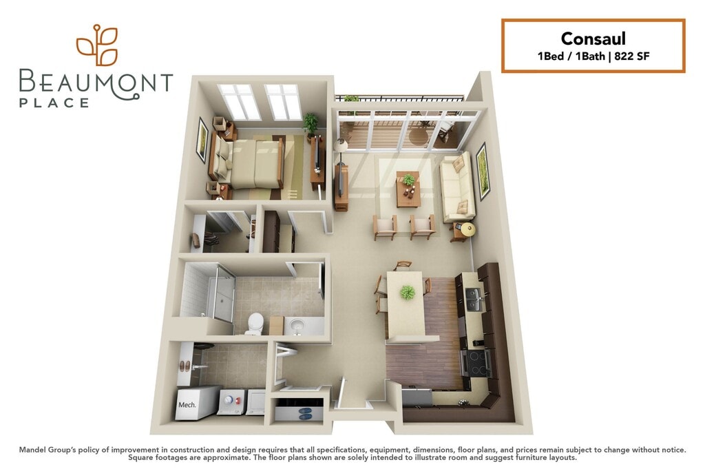 Apartment Model: ConsaulFrom $2,2301 Bedroom, 1 Bath, 822 sq ftUnavailable![]()