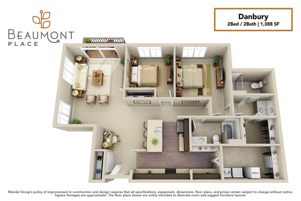 Apartment Model: DanburyFrom $2,8882 Bedroom, 2 Bath, 1388 sq ftUnavailable![]()