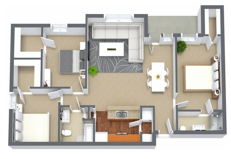 - Spacious One, Two and Three Bedroom Floor Plans