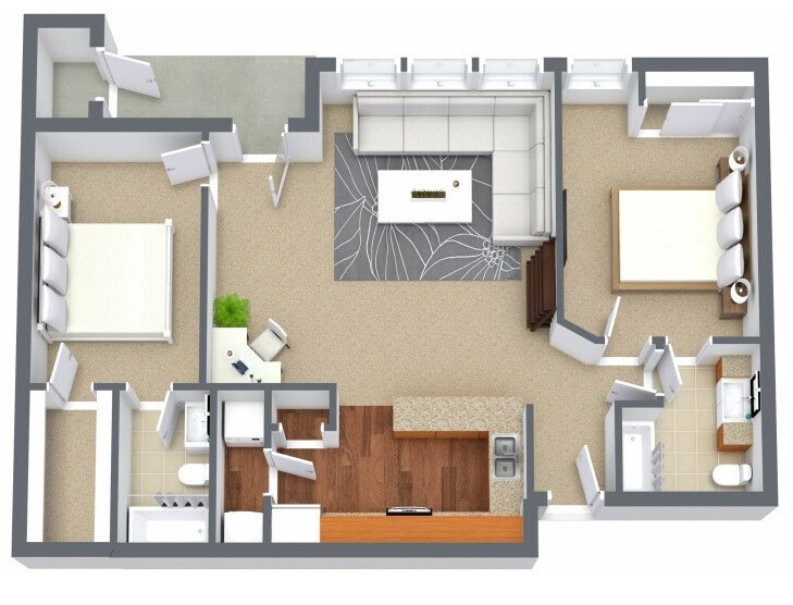 2 Beds, 2 Baths, 1003 sq ftModel Gallery