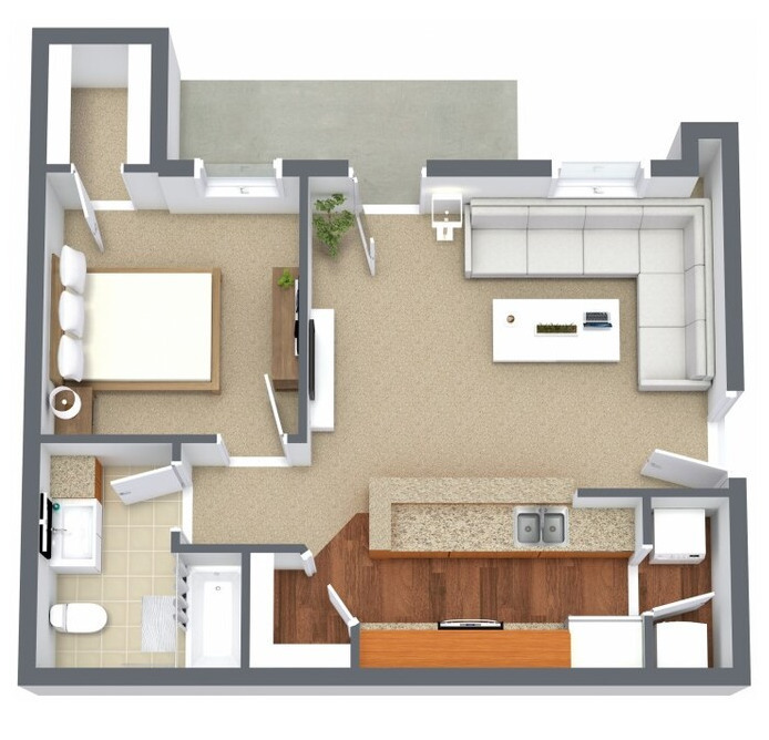 1 Bed, 1 Bath, 656 sq ftModel Gallery