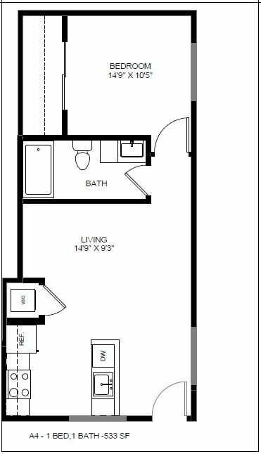 1 Bedroom 1 Bathroom - Floorplan 1 Apartment Unit: 111Apartment Model: 1 Bedroom 1 Bathroom$1,1251 Bedroom, 1 Bath, 453 sq ftAvailable Now1 Bedroom 1 Bathroom