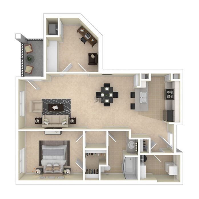 1 Bed, 1 Bath, 760 sq ftModel Gallery