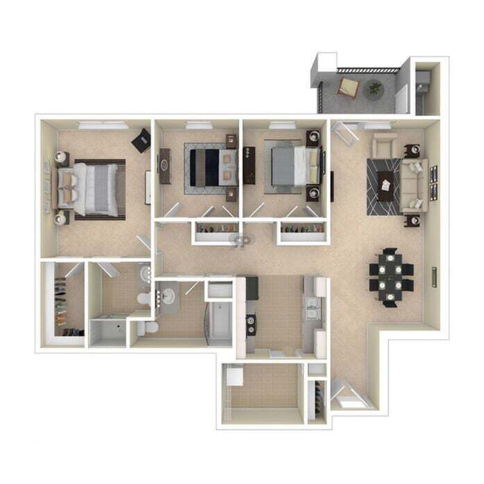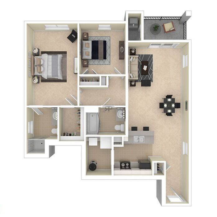 2 Beds, 2 Baths, 1193 sq ftLargest 2 BedroomThis is the largest 2 Bedroom at this PropertyModel Gallery