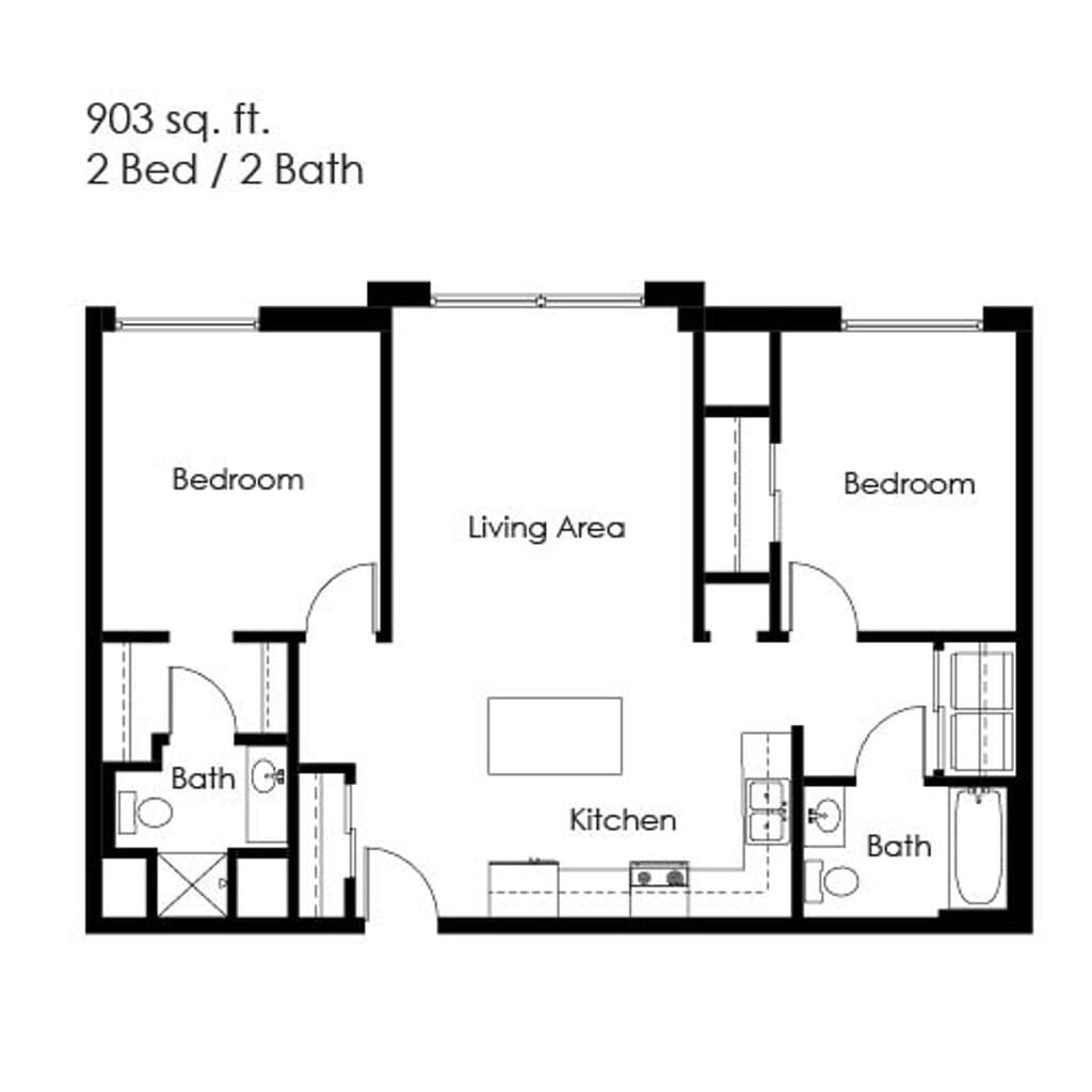 2 Bed / 2 Bath - Floorplan 11 Apartment Unit: 204Apartment Model: 2 Bed / 2 Bath$1,1952 Bedroom, 2 Bath, 903 sq ftAvailable December 10, 2025