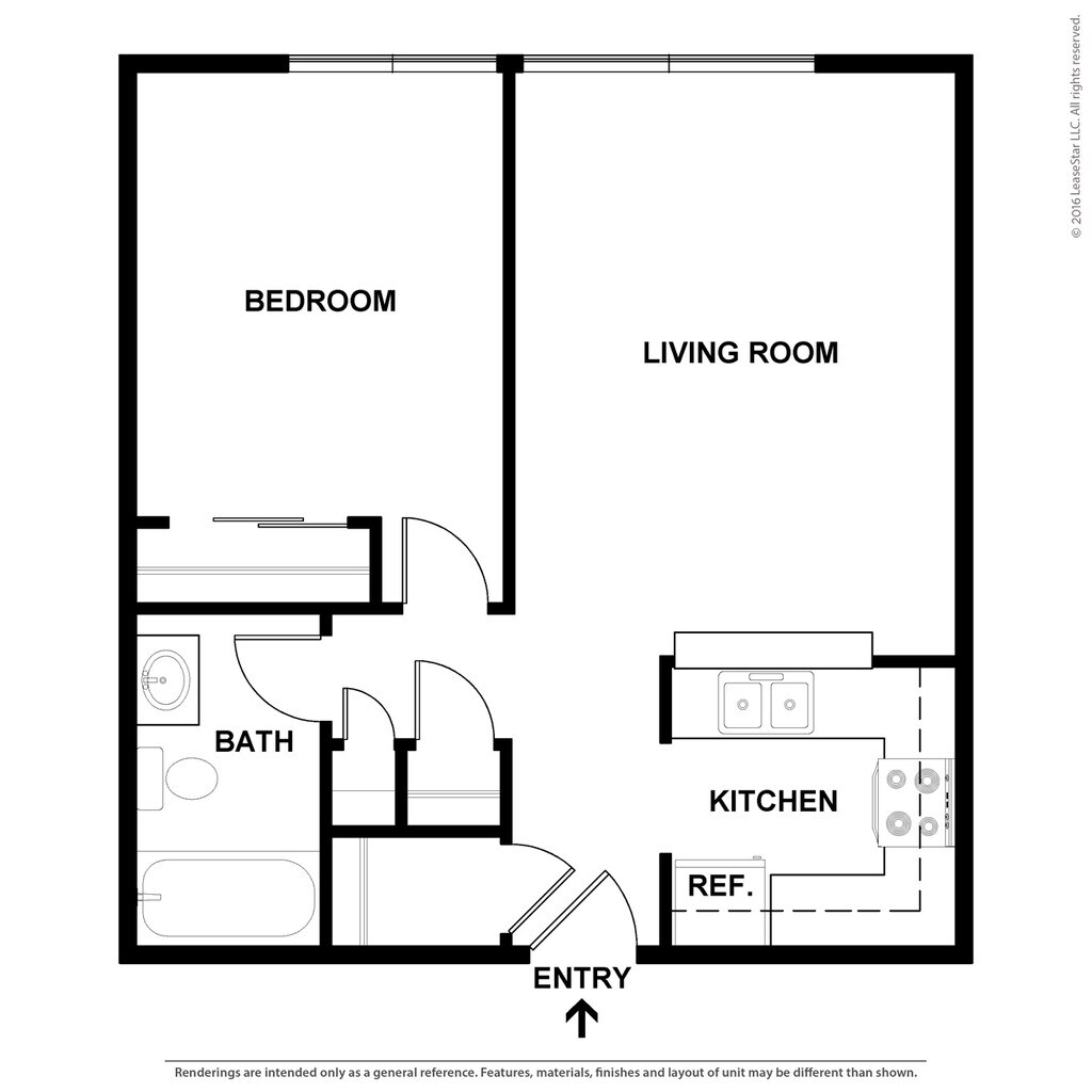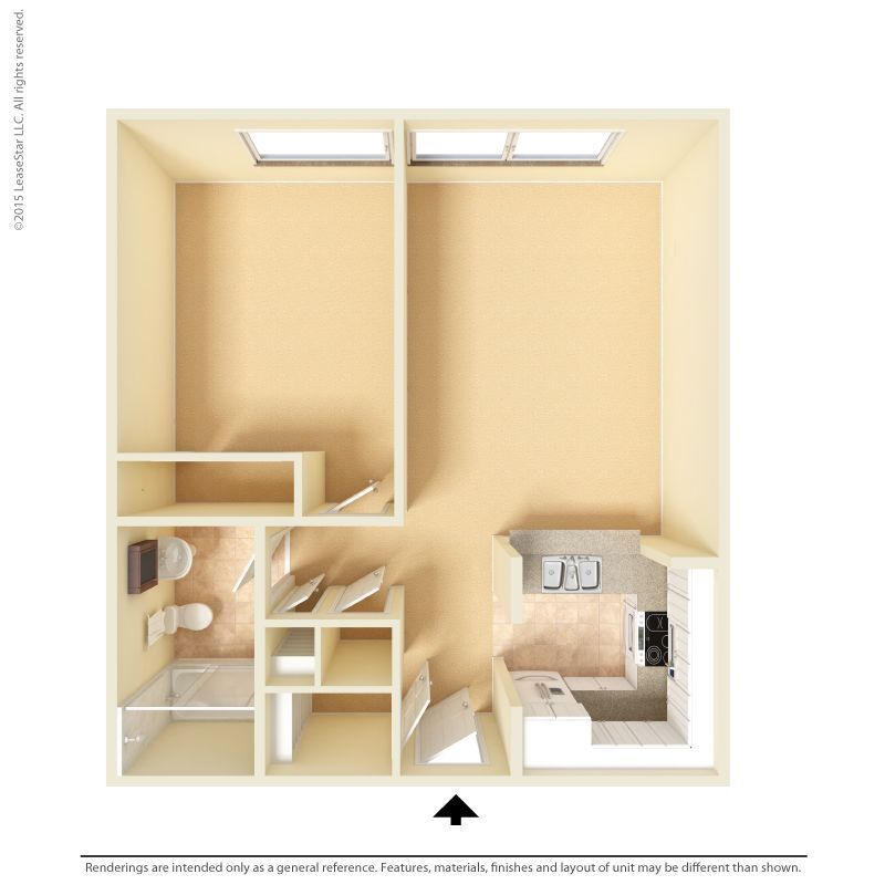 Apartment Model: 1B 1BFrom $1,7351 Bedroom, 1 Bath, 540 sq ftAvailable NowFloor plans are artist's rendering. All dimensions are approximate. Actual product and specifications may vary in dimension or detail. Not all features are available in every rental home. Prices and availability are subject to change. Base rent is based on monthly frequency. Additional fees may apply, such as but not limited to package delivery, trash, water, amenities, etc. Deposits vary. Please see a representative for details.