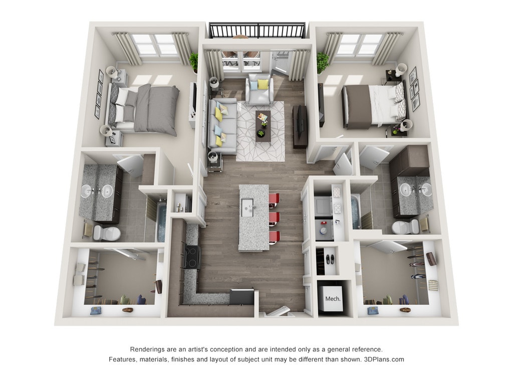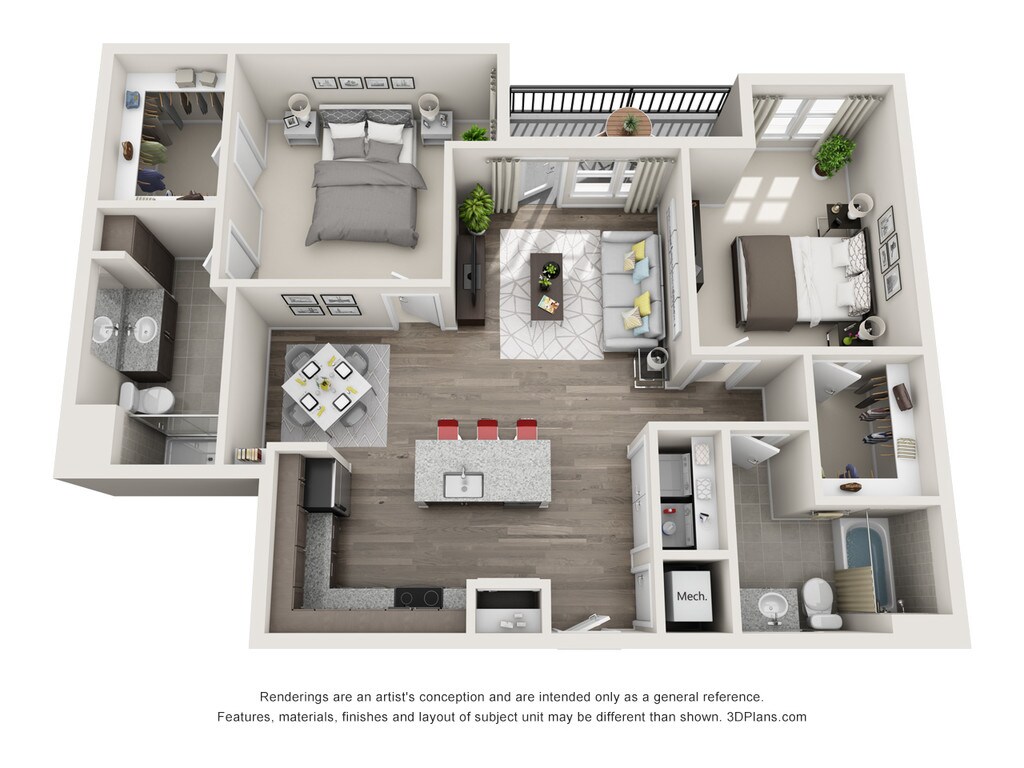 2 Beds, 2 Baths, 1186-1188 sq ftAvailable NowLargest 2 BedroomThis is the largest 2 Bedroom at this PropertyModel Gallery