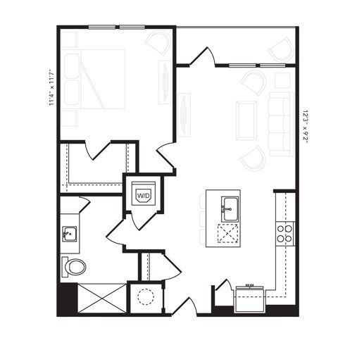 S1 - Floorplan 1 Apartment Unit: 510Apartment Model: S1$1,430Studio, 1 Bath, 540 sq ftAvailable December 3, 2025Floorplan S2