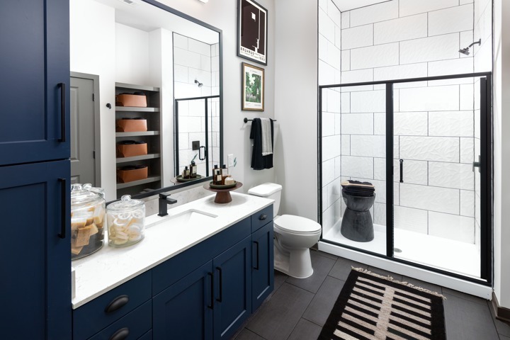 - Oversized Framed Mirrors, Double Vanities, and Built-In Linen Storage*