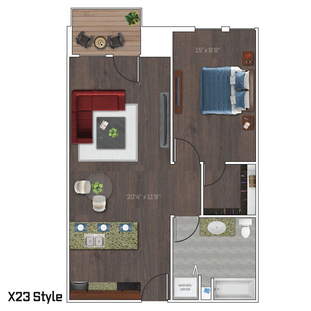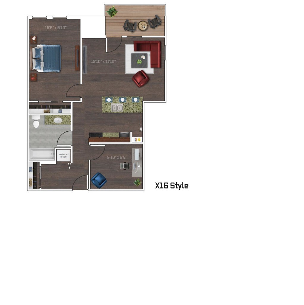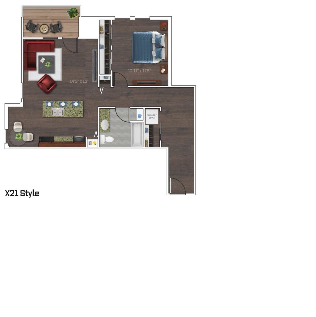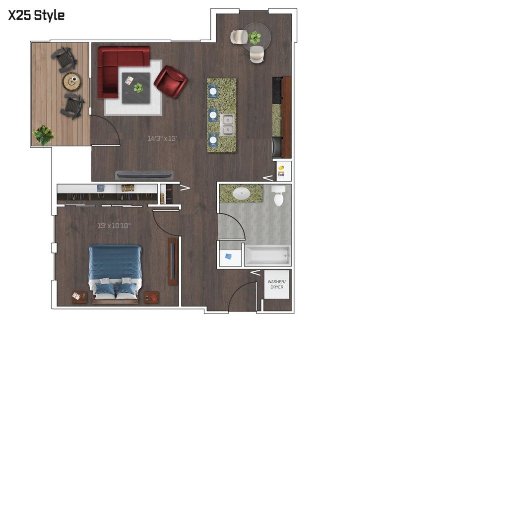 Apartment Model: X19From $1,6001 Bedroom, 1 Bath, 670 sq ftUnavailable![]() - X19 - Floorplan 1