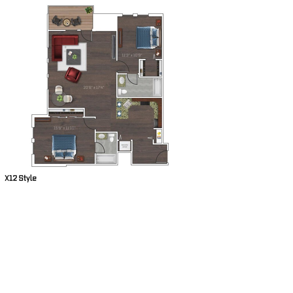Apartment Model: X12From $2,6002 Bedroom, 2 Bath, 1065 sq ftUnavailable![]() - X12 - Floorplan 1