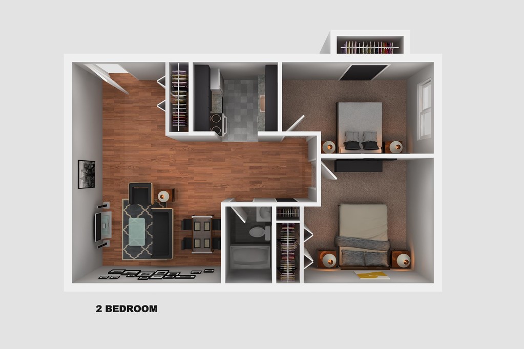2 Beds, 1 Bath, 772 sq ftModel Gallery
