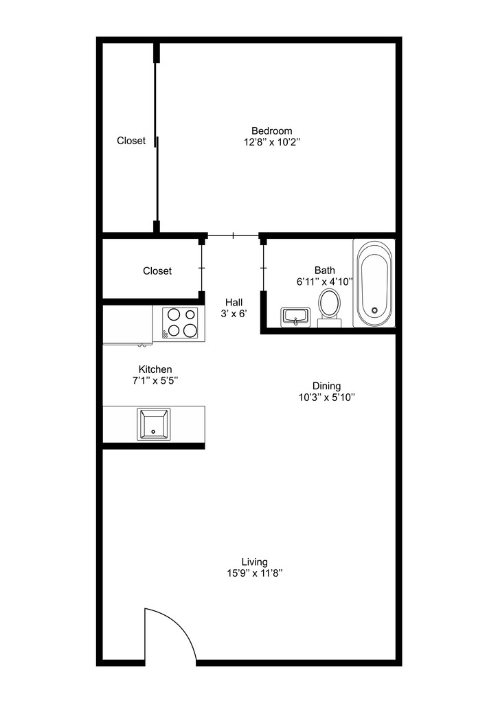 1 BR/1 BA- B - Floorplan 1 1 BR/1 BA- A
