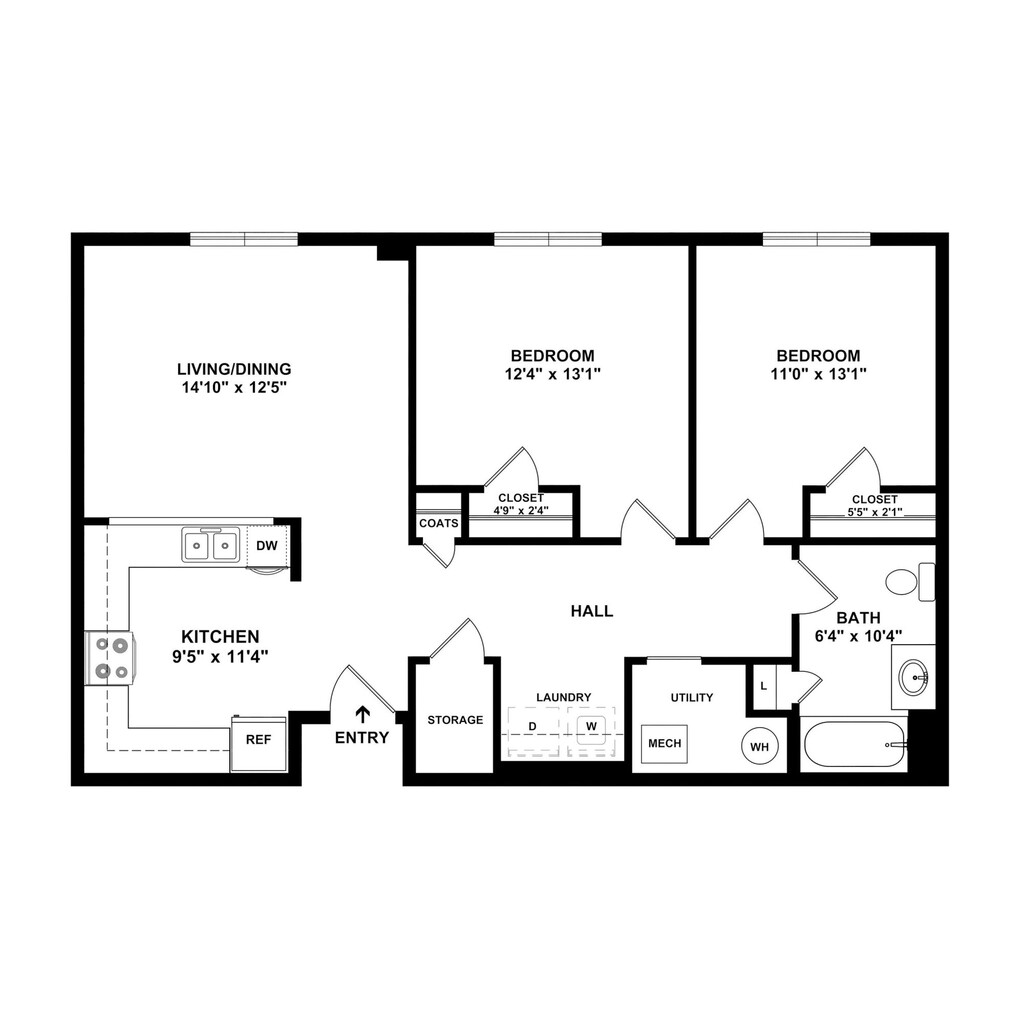 1 Bedroom - Floorplan 3 2 Bedrooms