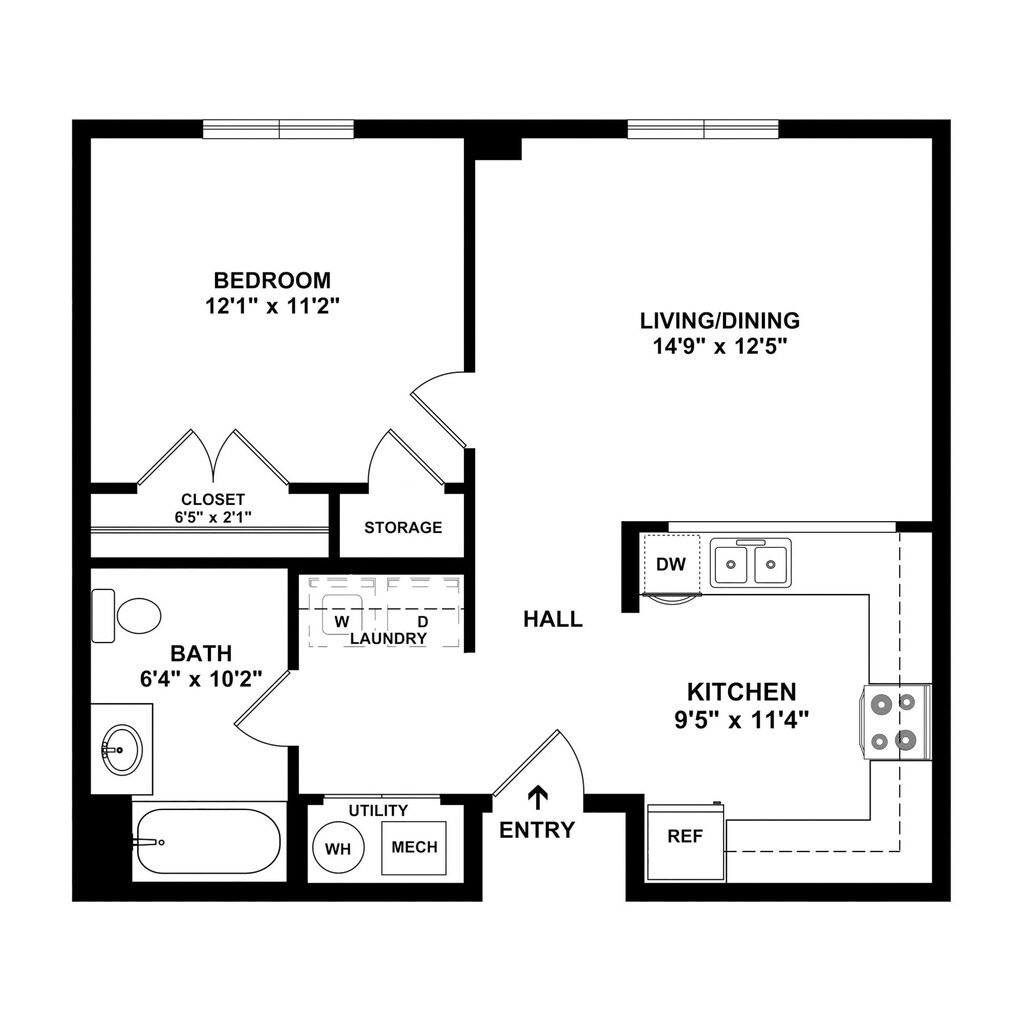 Apartment Model: 1 Bedroom$1,2611 Bedroom, 1 Bath, 633-677 sq ftUnavailable![]()