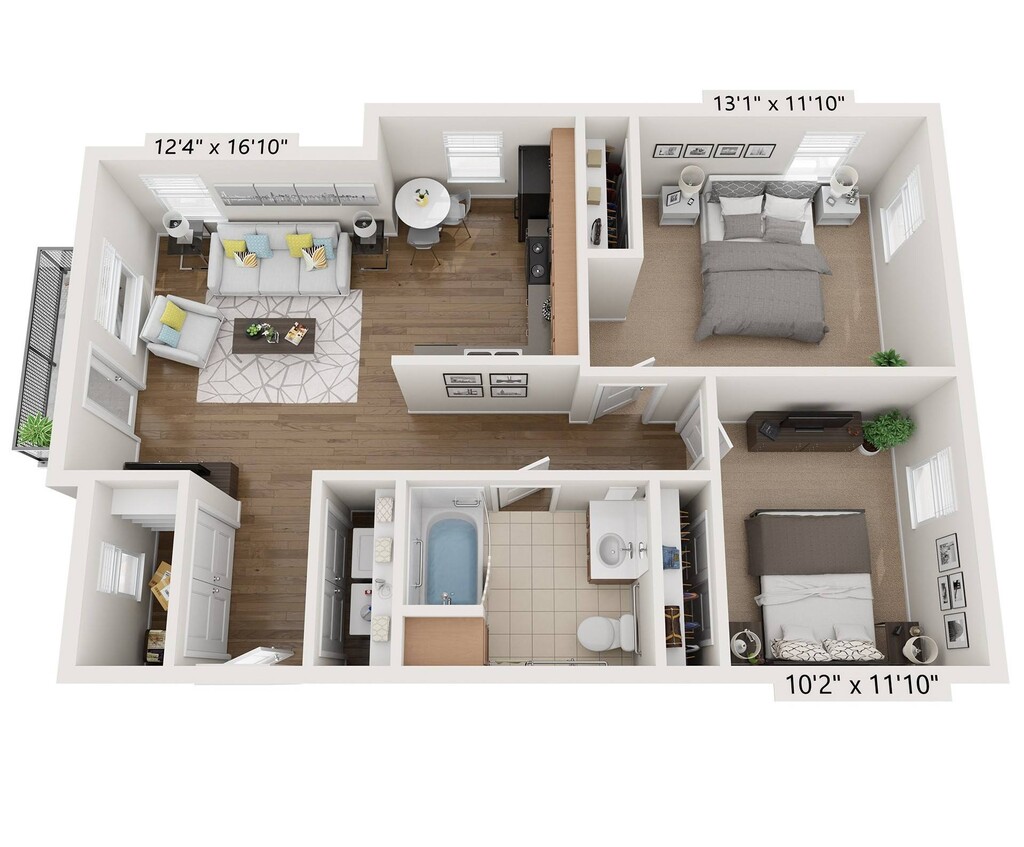 2 Beds, 1.5 Baths, 1002 sq ftAvailable NowLargest 2 BedroomThis is the largest 2 Bedroom at this PropertyModel Gallery
