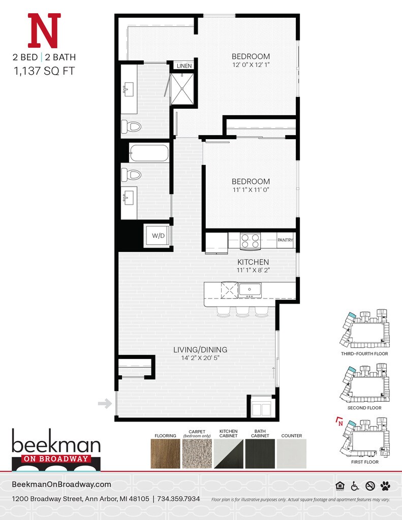 Phase II now open. Two buildings = twice the amenities. Contact leasing office for details.Beekman on Broadway offers modern finishes, thoughtfully designed floorplans, unrivaled amenities. These brand-new apartments in Ann Arbor, Michigan combine style, comfort, and functionality. Located downtown, just north of Kerrytown near the medical campus, Beekman is an outdoor enthusiast's paradise, nestled into the curve of the Huron River and surrounded by parks and recreation spaces.These new apartments in Ann Arbor feature open floorplans with oversized windows, plank flooring, stylish kitchens with Energy Star appliances, gas range, and quartz countertops, spa-like bathrooms and walk-in closets (select plans). Furnished apartments are available.We are proud to offer the most amenities in the area, including co-working space, pool and sundeck with grilling area, fitness center, private dining room/conference room, catering kitchen, lounge, game room. & 24/7 fresh market.