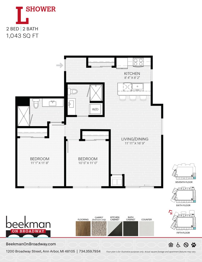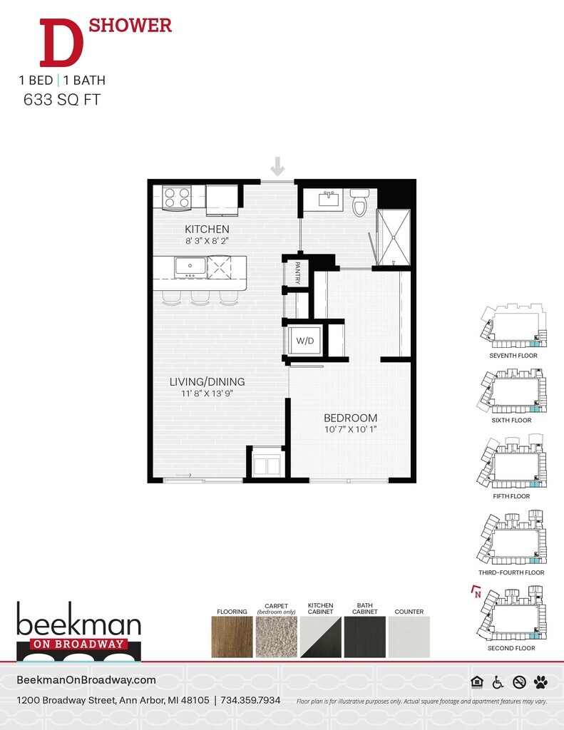 D Shower - Floorplan 1 Apartment Unit: 603Apartment Model: D Shower$2,5751 Bedroom, 1 Bath, 633 sq ftAvailable NowApartment Unit: 203Apartment Model: D Shower$2,4751 Bedroom, 1 Bath, 633 sq ftAvailable November 5, 2025E Shower