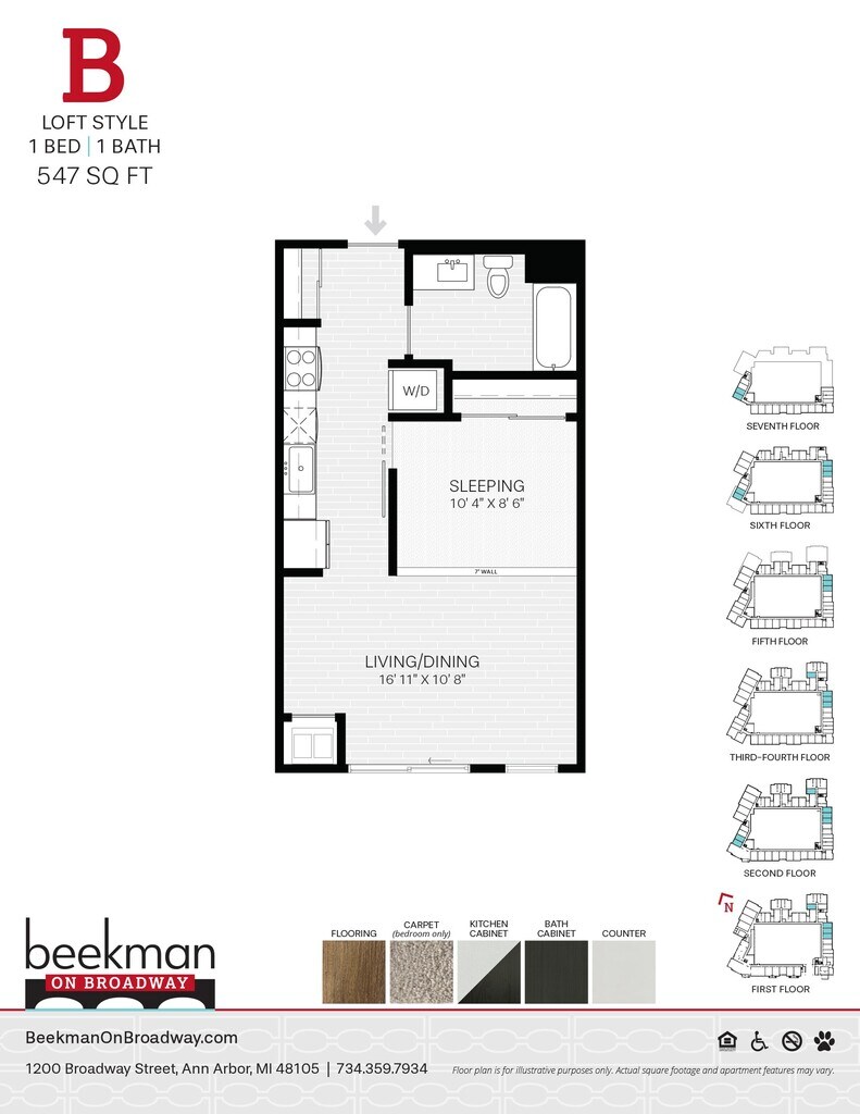 B - Floorplan 1 Apartment Unit: 639Apartment Model: B$2,2251 Bedroom, 1 Bath, 547 sq ftAvailable NowD Shower