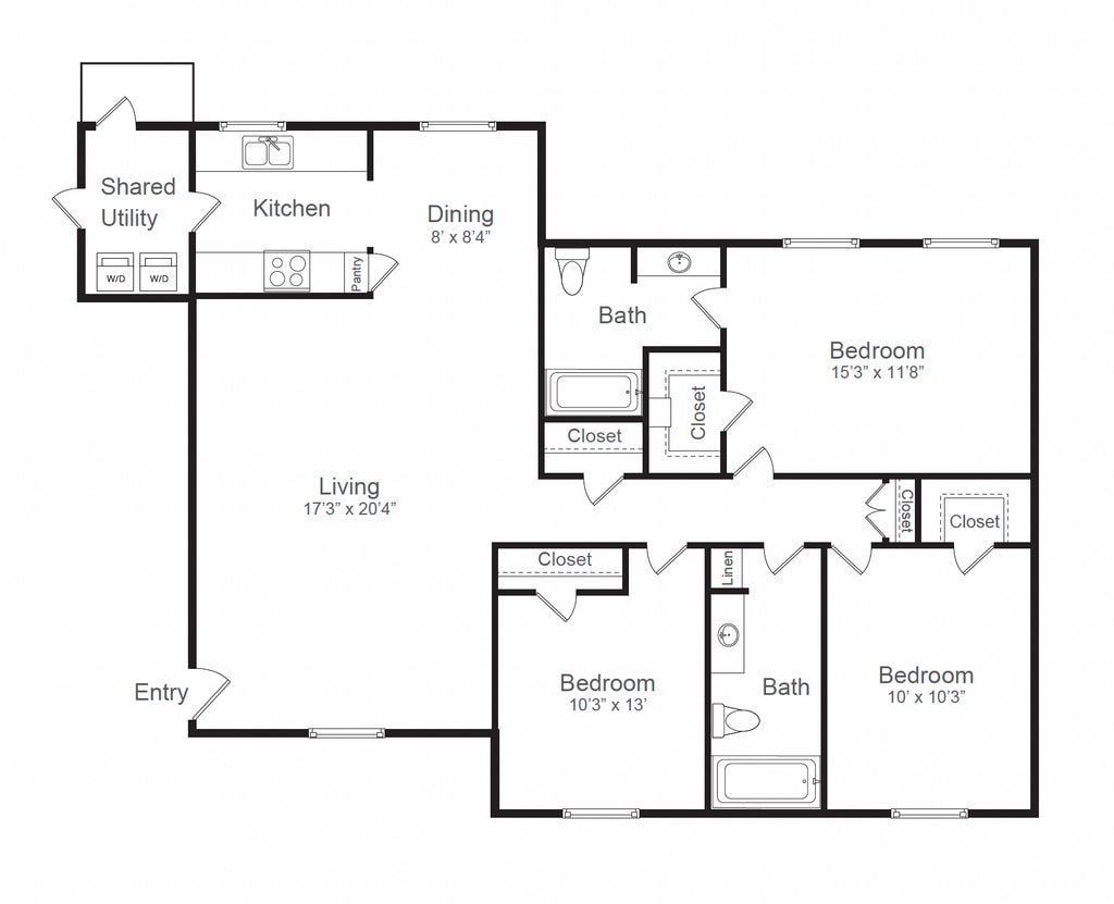 Apartment Model: C3Call For Rates3 Bedroom, 2 Bath, 1520 sq ftUnavailable![]()