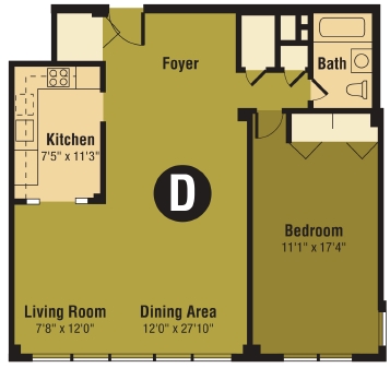 Studio, 1 Bath, 600 sq ftAvailability Details