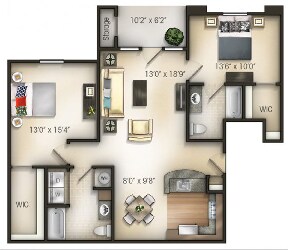 2 Beds, 2 Baths, 1215-1260 sq ftAvailable Nov 6Largest 2 BedroomThis is the largest 2 Bedroom at this PropertyModel Gallery