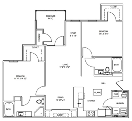 1 Bed, 1 Bath, 887 sq ftAvailable NowLargest 1 BedroomThis is the largest 1 Bedroom at this PropertyModel Gallery