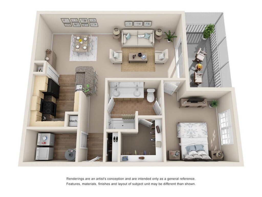 1 Bed, 1 Bath, 1008 sq ftModel Gallery