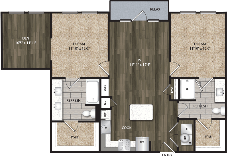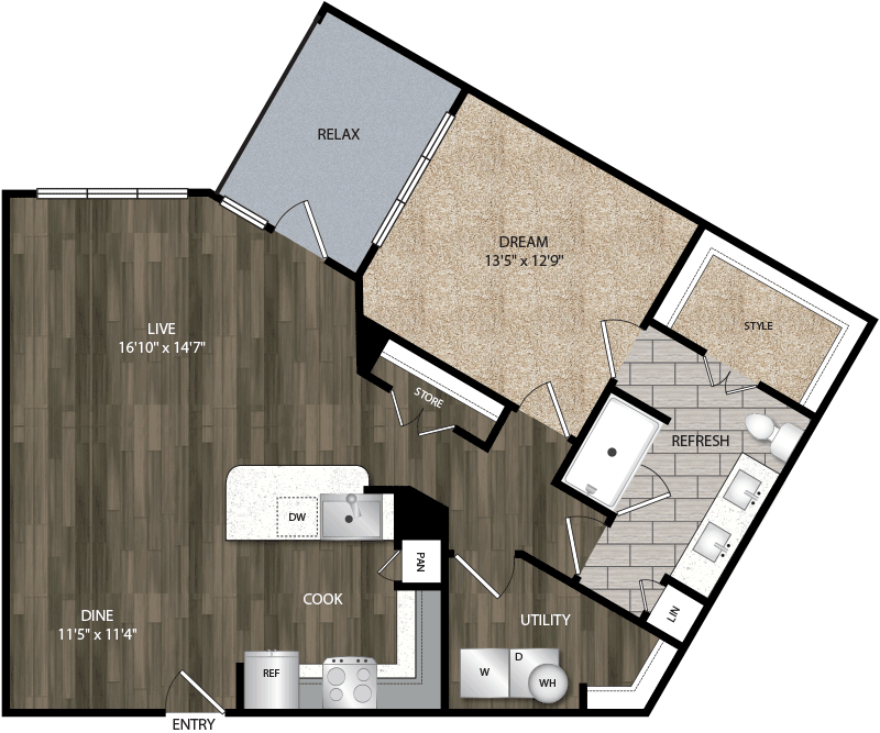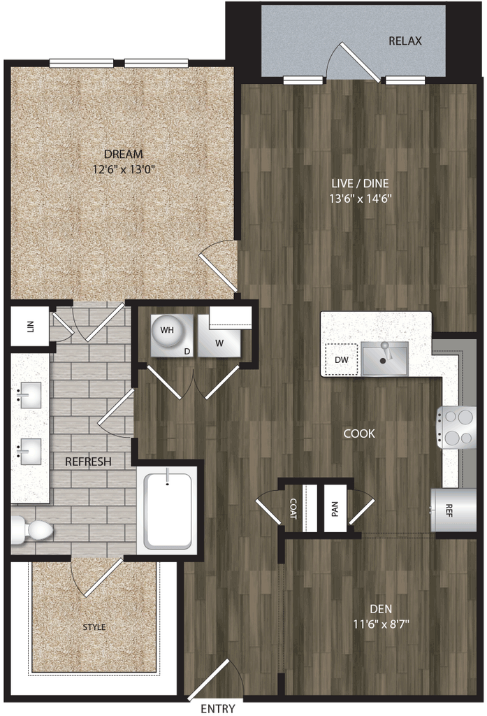 Studio, 1 Bath, 616 sq ftModel Gallery
