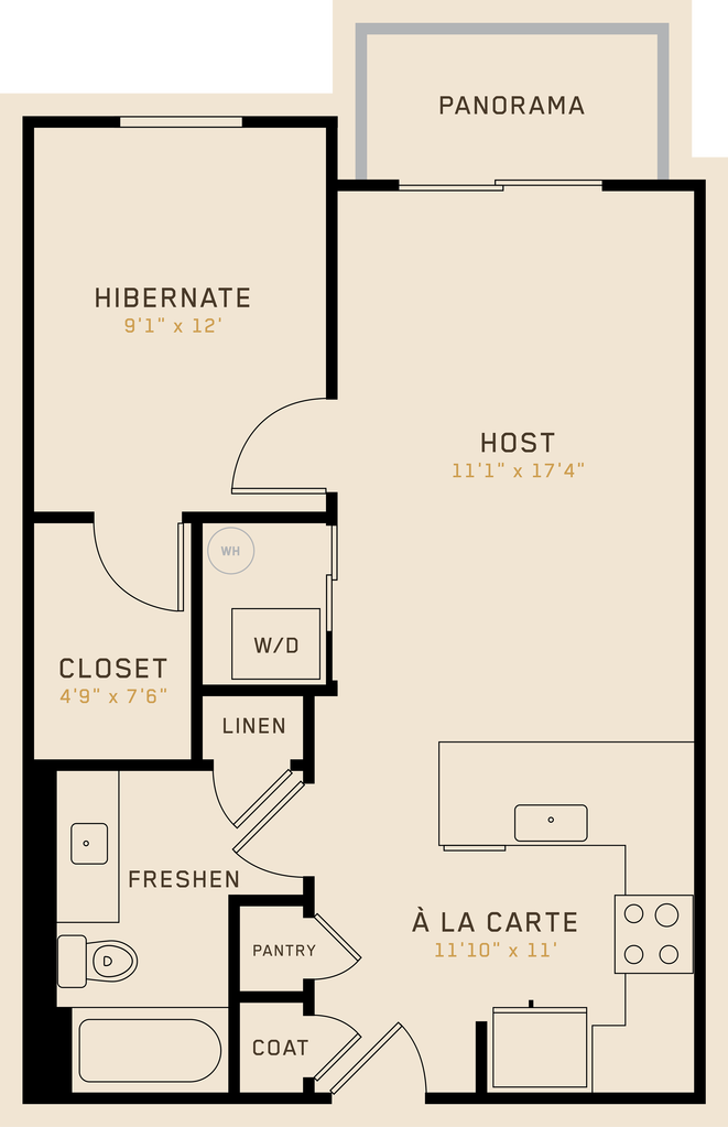 Studio, 1 Bath, 498 sq ftAvailable NowModel Gallery