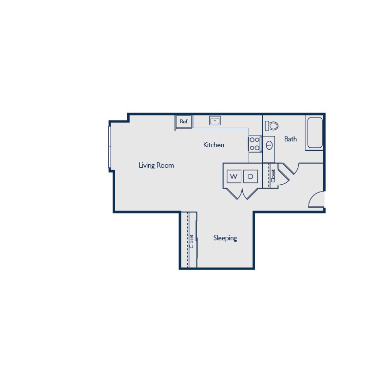 S1F - Floorplan 1 Apartment Unit: 113Apartment Model: S1F$1,840Studio, 1 Bath, 627 sq ftAvailable November 21, 2025Floorplan S1A