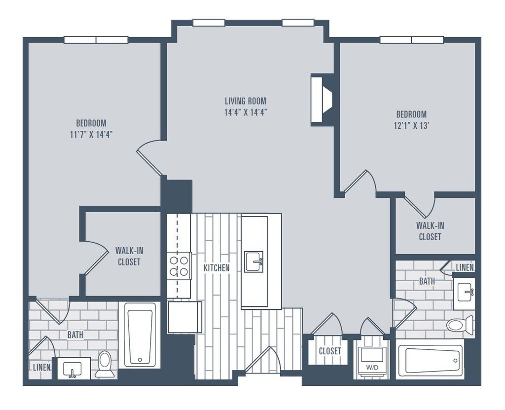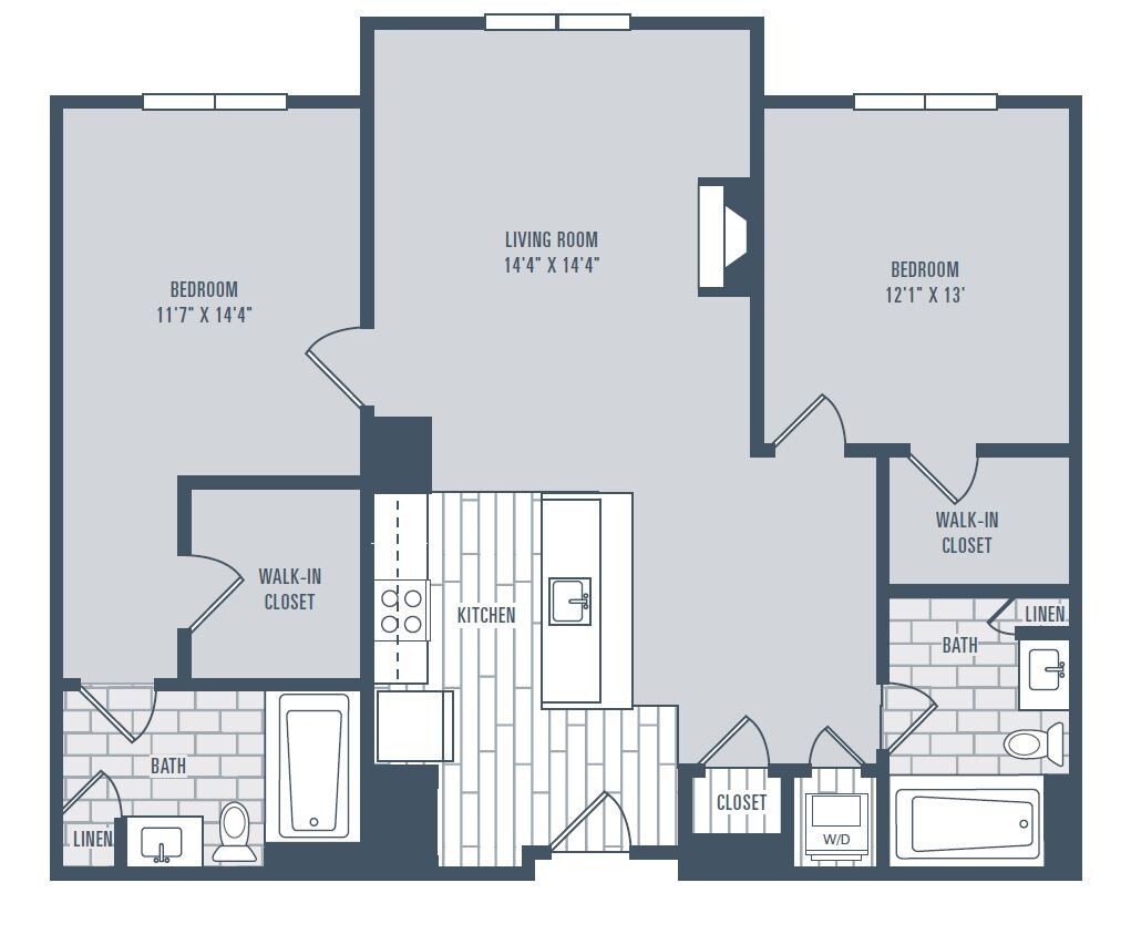 B2G - Floorplan 1 Apartment Unit: 2305Apartment Model: B2GCall For Rates2 Bedroom, 2 Bath, 1132 sq ftAvailable NowFloorplan B2L
