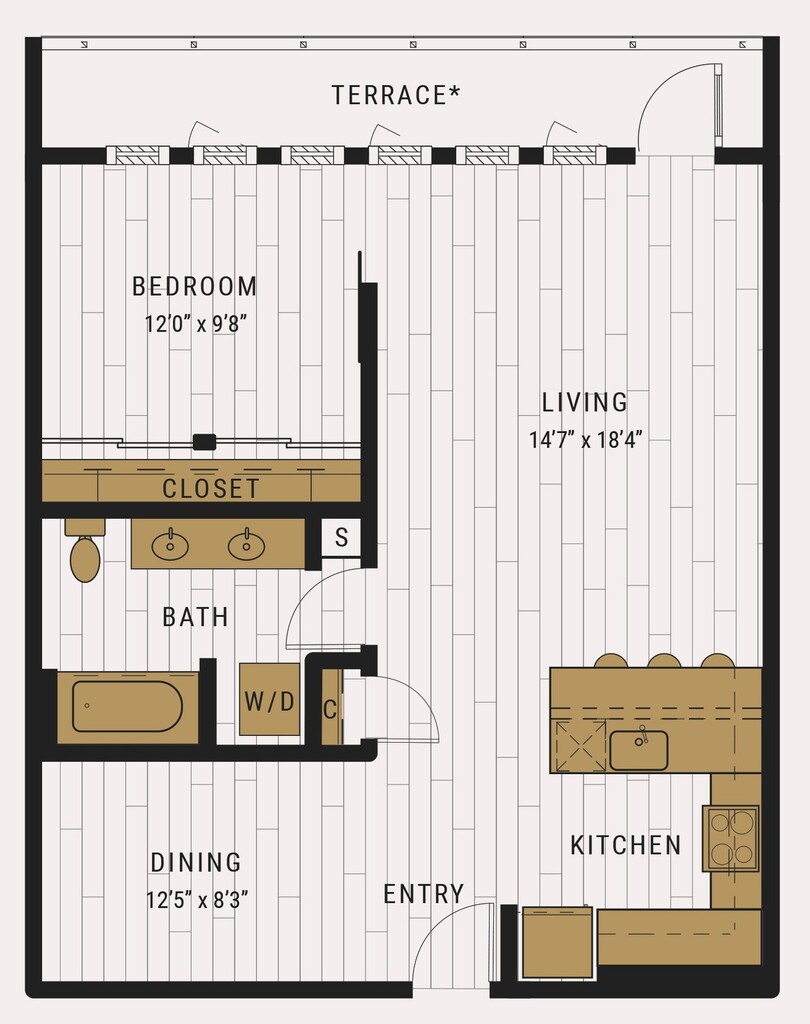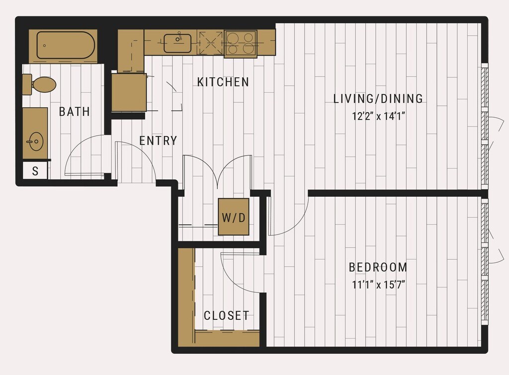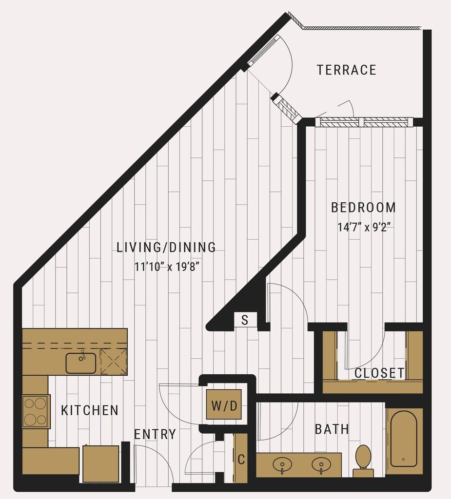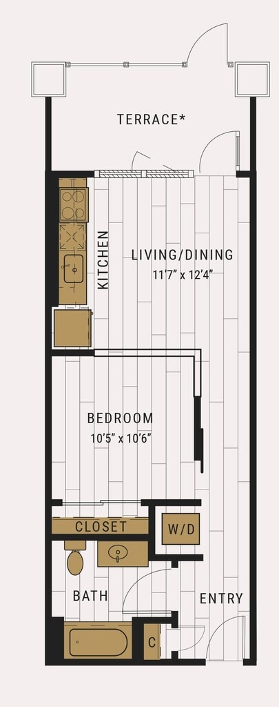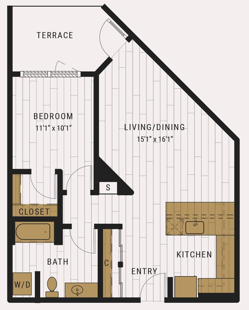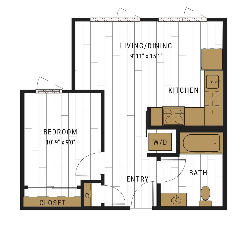 S1C - Floorplan 1 Apartment Unit: 727Apartment Model: S1C$2,105Studio, 1 Bath, 462 sq ftAvailable NowFloorplan S1D