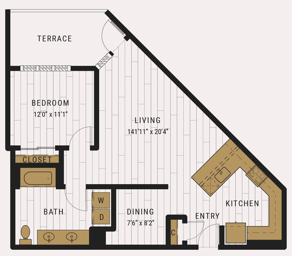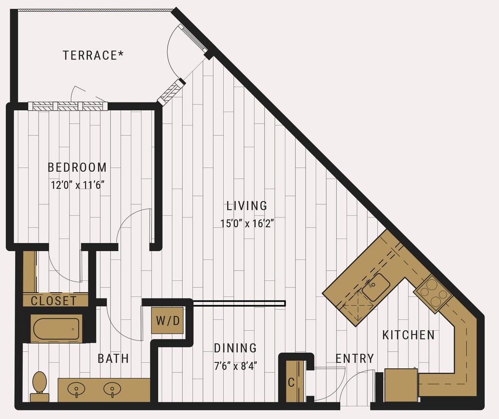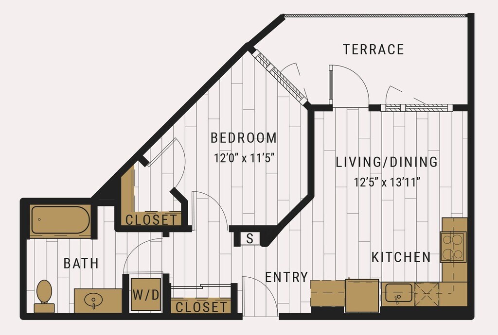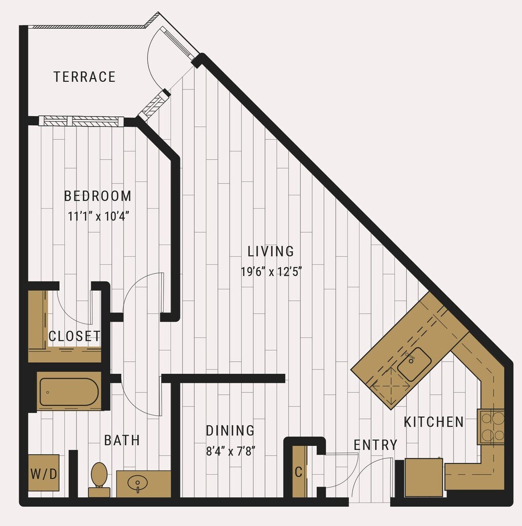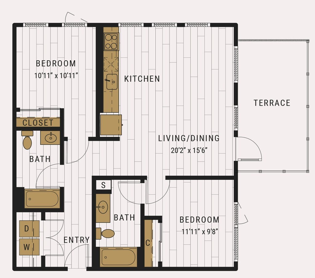 S1C - Floorplan 1 Apartment Unit: 727Apartment Model: S1C$2,105Studio, 1 Bath, 462 sq ftAvailable NowFloorplan S1D