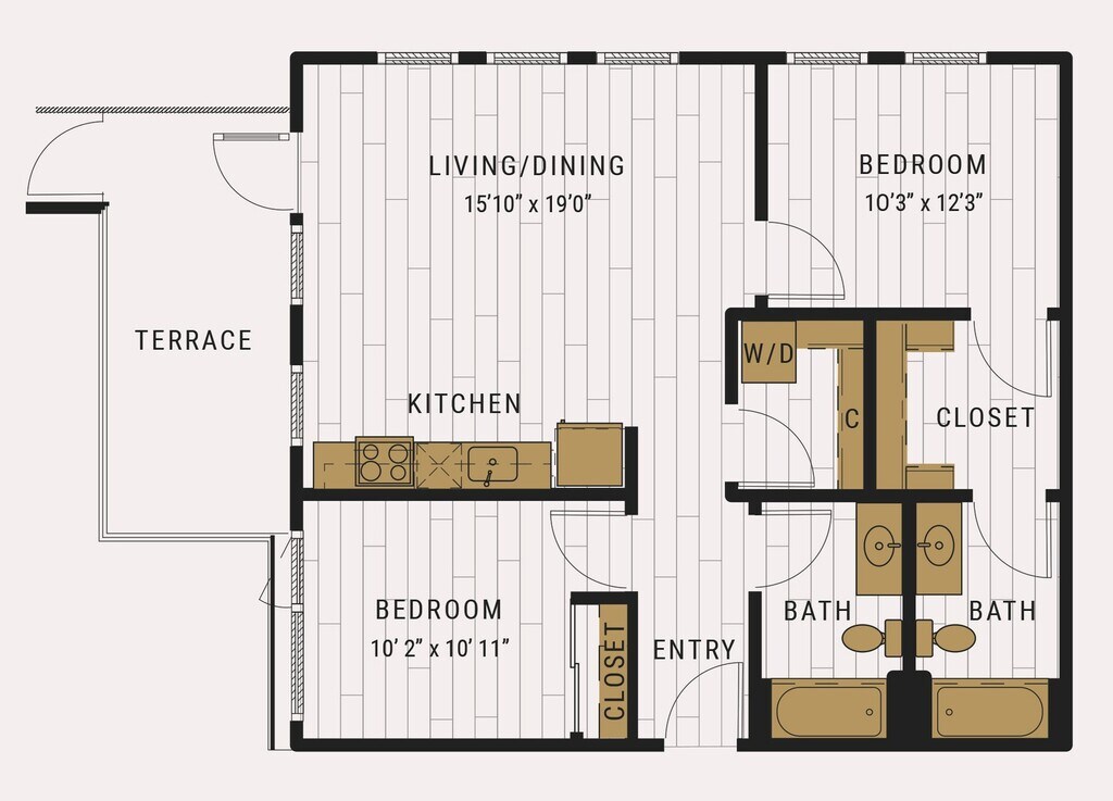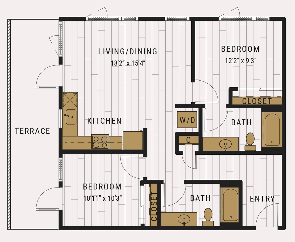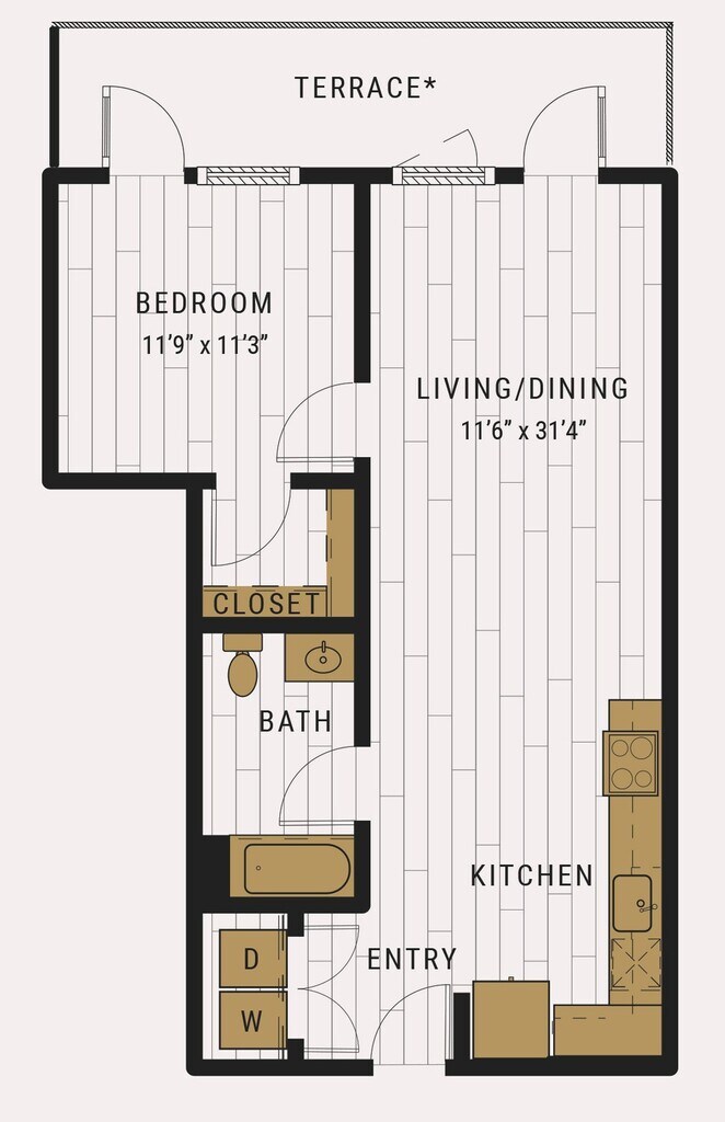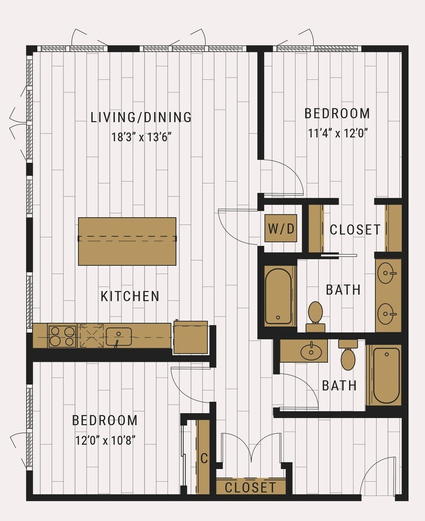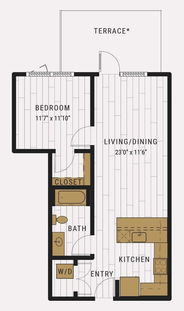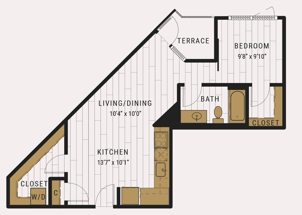S1C - Floorplan 1 Apartment Unit: 727Apartment Model: S1C$2,105Studio, 1 Bath, 462 sq ftAvailable NowFloorplan S1D