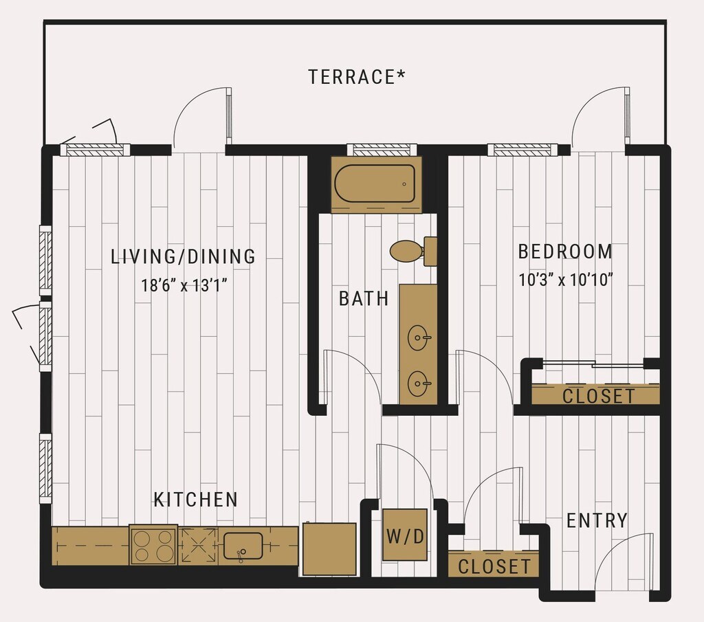 Studio, 1 Bath, 462 sq ftAvailable NowModel Gallery
