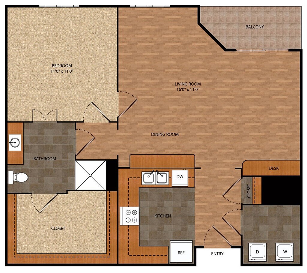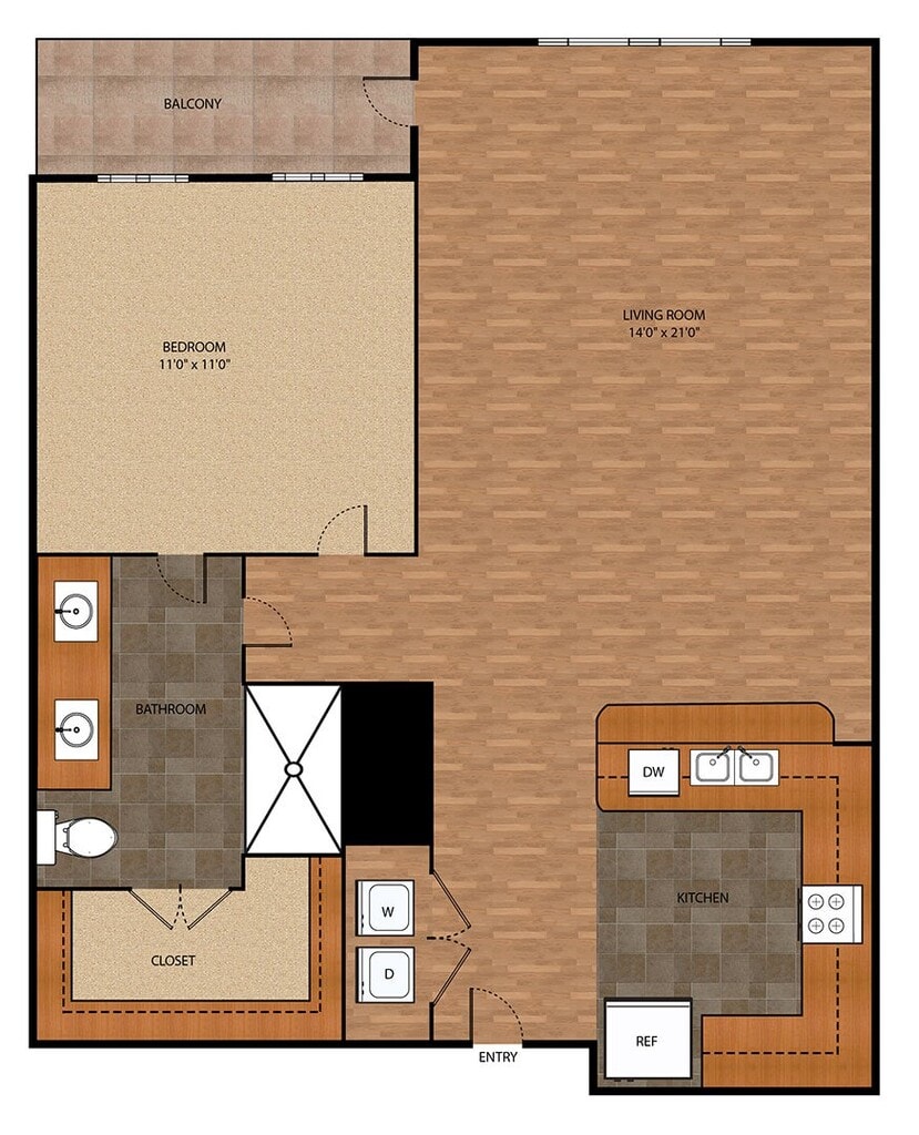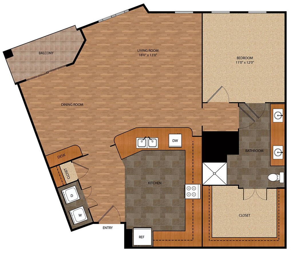 1 Bed, 1 Bath, 910-1064 sq ftLargest 1 BedroomThis is the largest 1 Bedroom at this PropertyModel Gallery