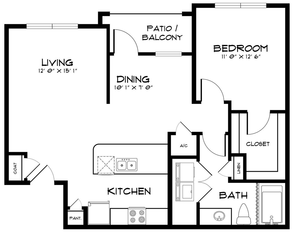 Apartment Model: A1$1,1701 Bedroom, 1 Bath, 738 sq ftUnavailable![]()